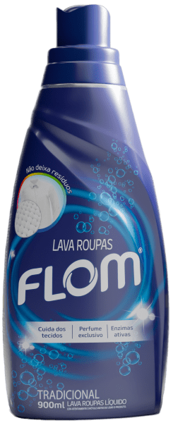 Flom Lava-Roupas Tradicional cuida dos tecidos, tem um surpreendente perfume exclusivo e deixa na pele uma agradável sensação.